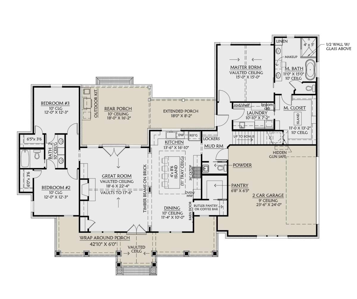 Its single-story layout ensures convenience, while the bonus room allows room to grow. Whether built in the country or suburbs, it feels both timeless and modern.