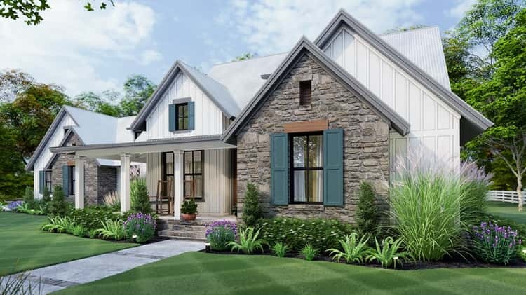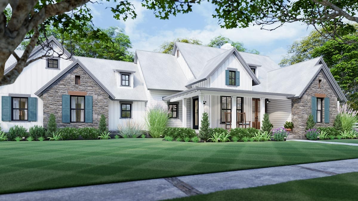 3-Bedroom New American Farmhouse with L-Shaped Front Porch (1,859 Sq Ft)